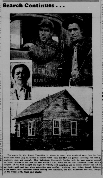 In 1940, Ona had a tumour discovered in her womb, though it was successfully removed. She recovered but constantly worried that it would return, with this stress and worry leading to the onset of hypochondria. This continued until 1949, when George took her to see Dr. Bill Reid in Selkirk, and he decided to have her receive shock treatments in the Selkirk Mental Institution. She was better for a while and managed at home. Gradually, she exhibited worsening symptoms and began behaving strangely. Then, on July 9th, 1950, after being told that she should return to the Mental Institution, she disappeared the next day. After a week’s exhaustive search by family, neighbours and authorities, the search was called off, and she was never found.